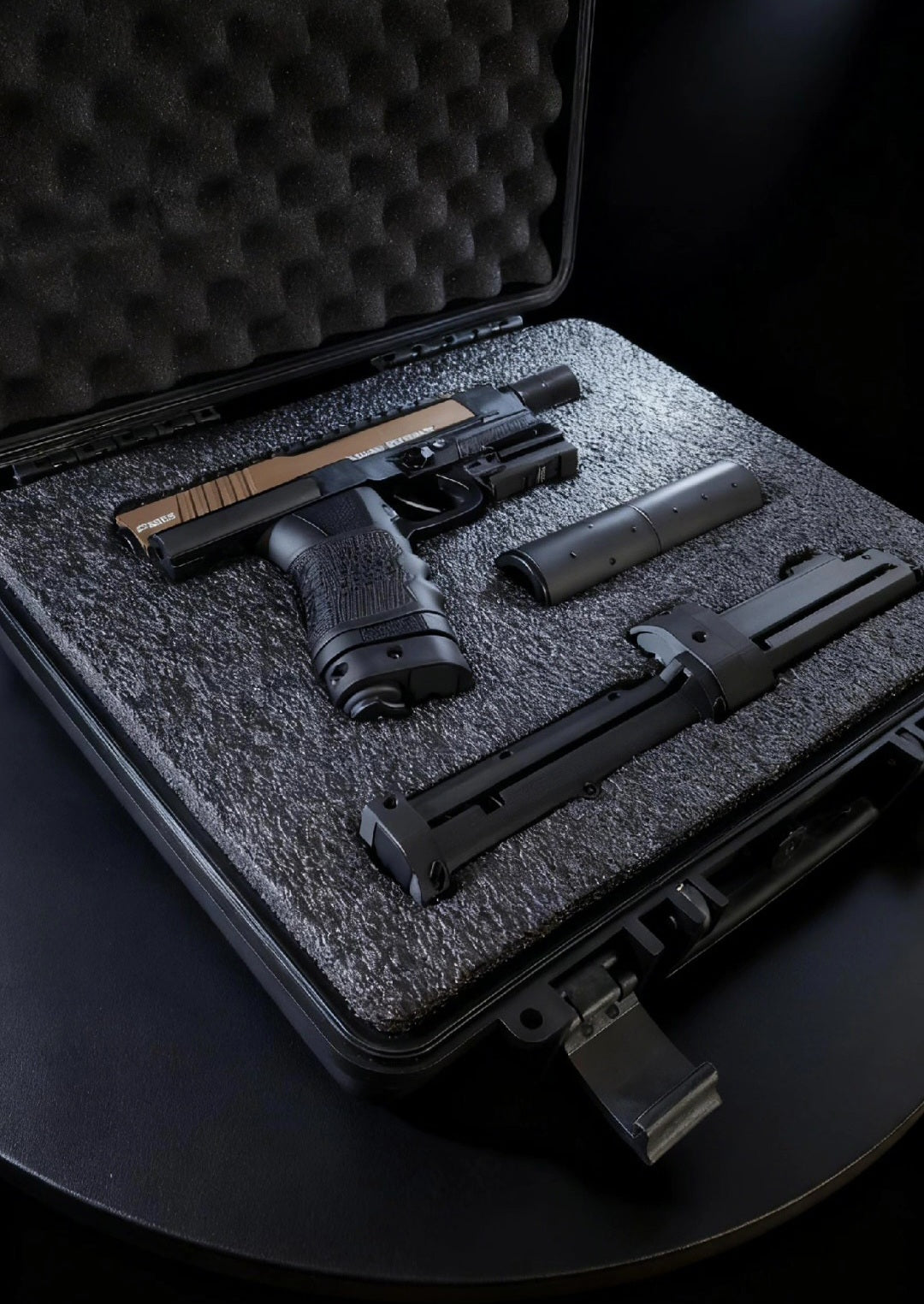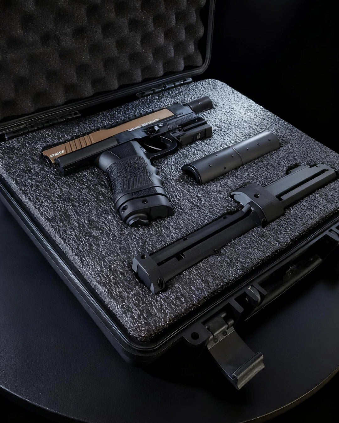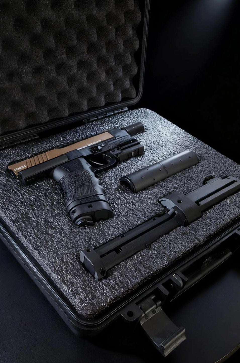 This FSC definitely packs a punch 👊, power mod and all, picatinny rail, 12 gram magazines and 1 12 gram extended magazine, suppressor has a 3 inch extended barrel recessed inside.