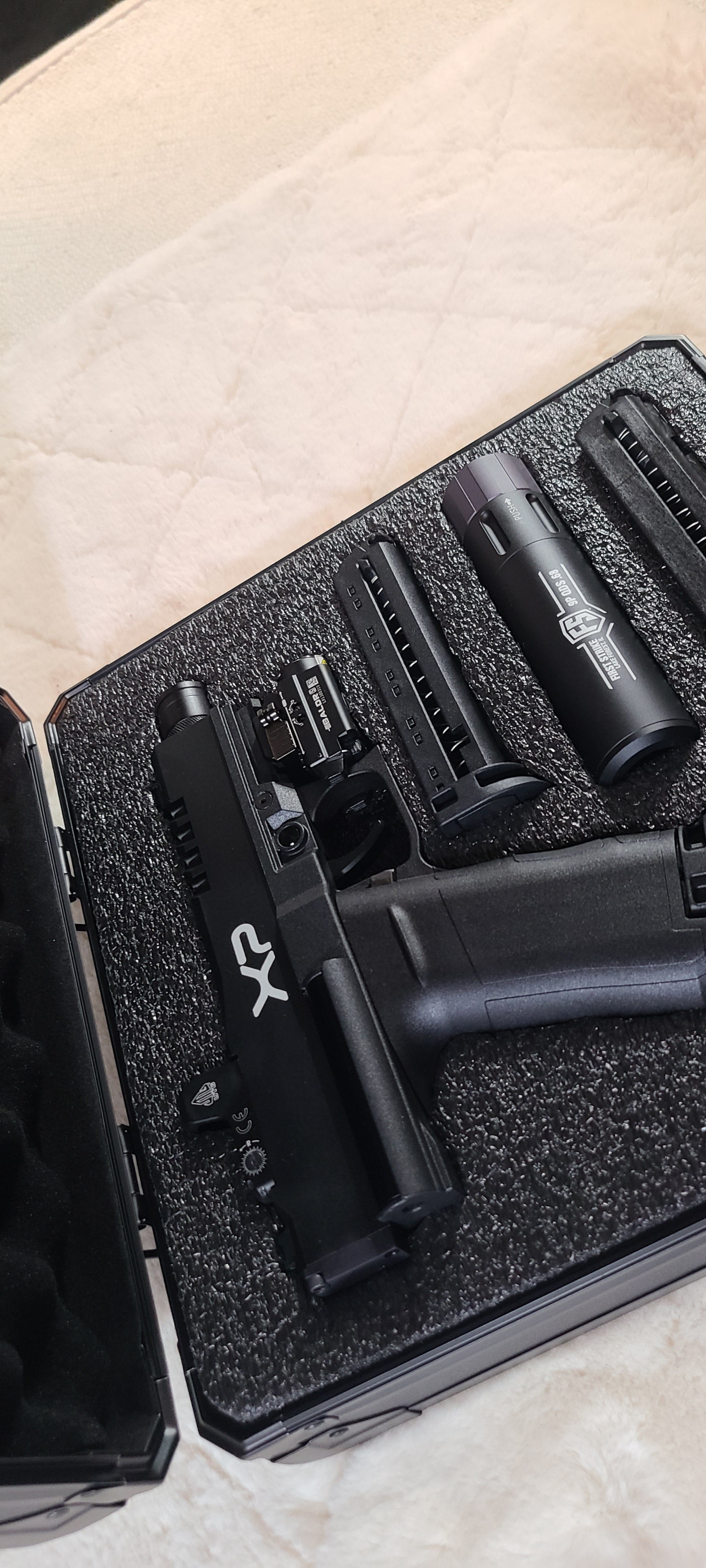 Now you can travel with Power & Style, with this First Strike XP travel kit, 686 barrel, CLL POWER MOD, Balder S green dot/tac light combo, UTG RMR red dot, and more.