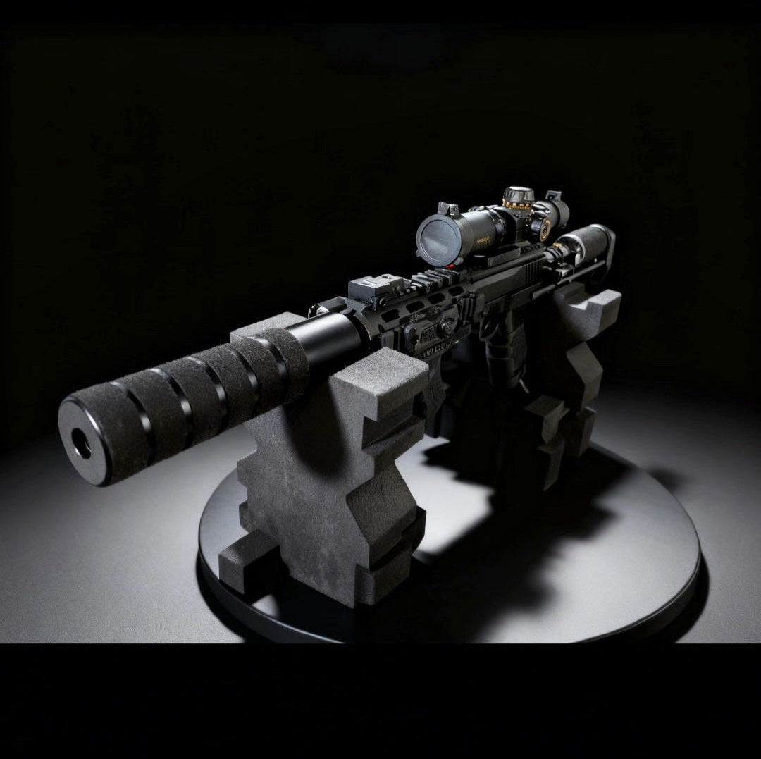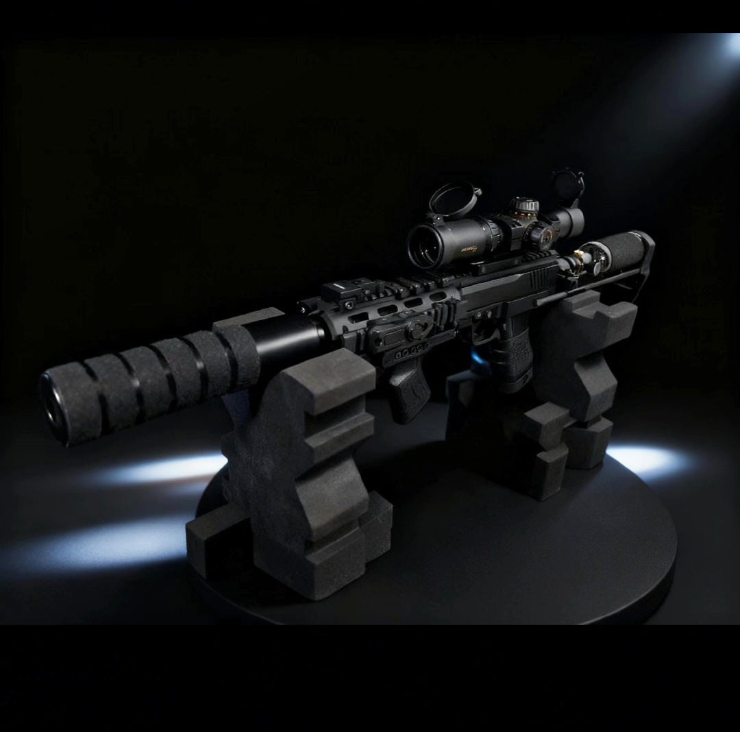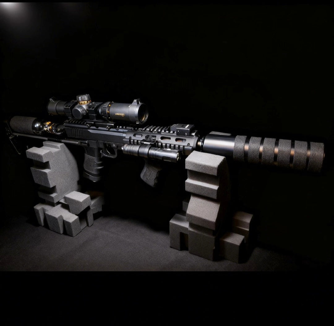 This FSC CARBINE is compact, straight, and definitely solid, a true powerhouse!!! Comes with every available option, tactical flashlight with pressure switch, red dot lazer, sniper scope, HD 24 suppressor with tactical wrap, 9CI tank with tactical wrap, retractable buttstock, Direct airflow, with 1000psi, and more 😀