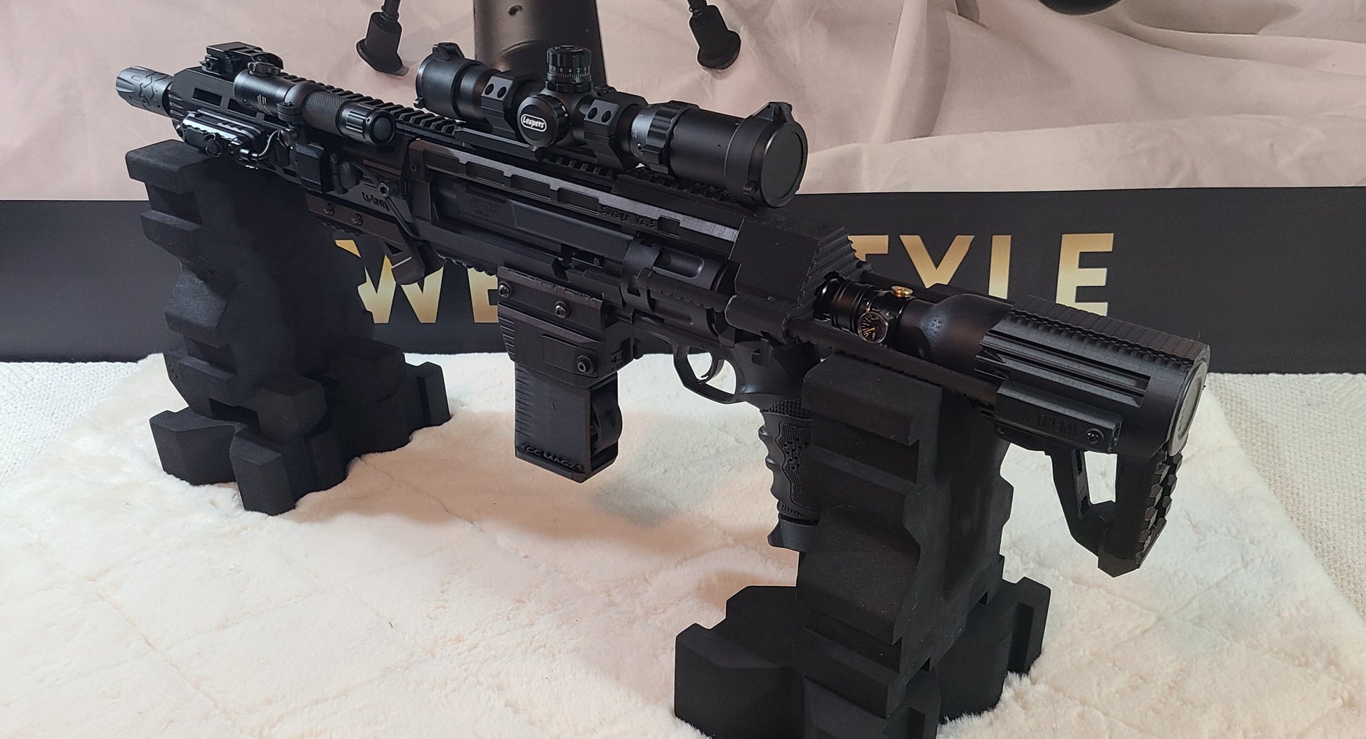 The name certainly speaks for itself, coming in at over 90+ joules. This HDB comes with everything you would need for less lethal home defence, green dot lazer, tac light with pressure switch, 3 rifle barrel extensions, leapers scope, 1000psi output pressure on tank, power pin, extra clip mag, Critical Situations HDR Conversion kit, and slide check on/off asa.