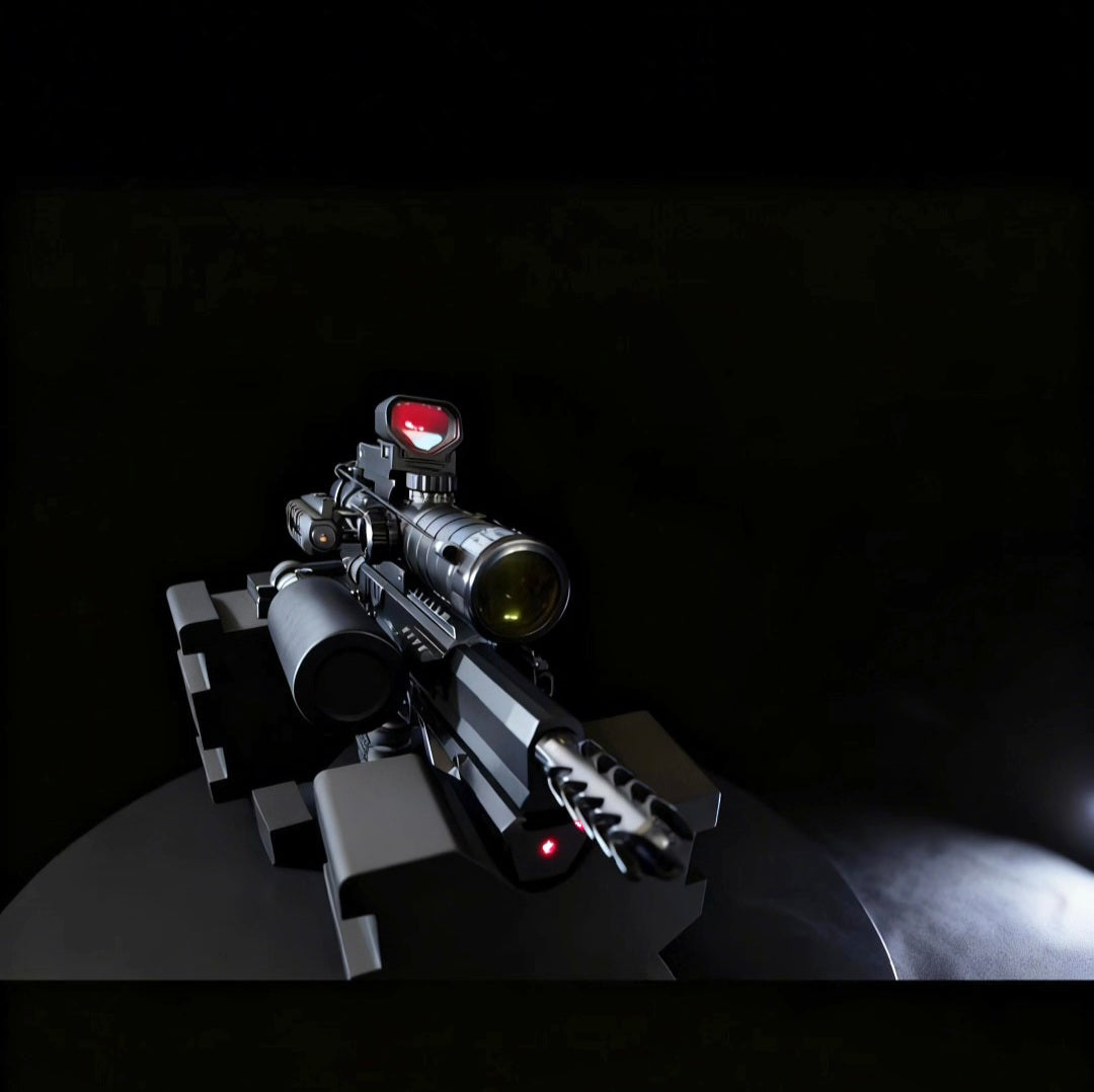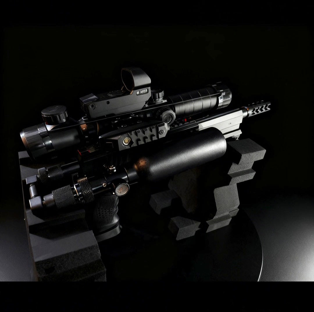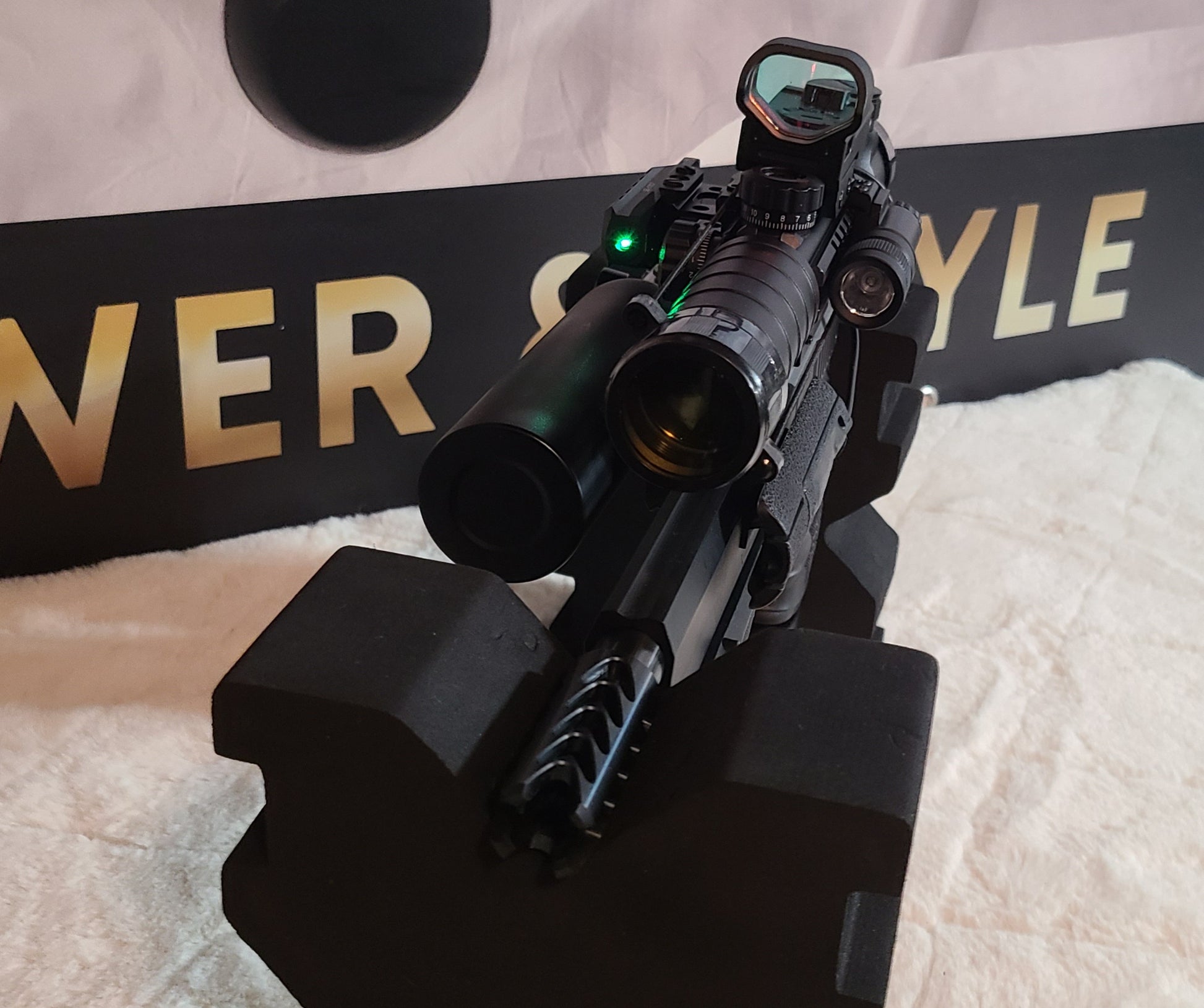 Yes, small and compact, little over 17 inches, red dot lazer, green dot lazer, tac light with pressure switch, red dot sight, range finder, custom side mount, flash hider, slide check off on asa, and more.