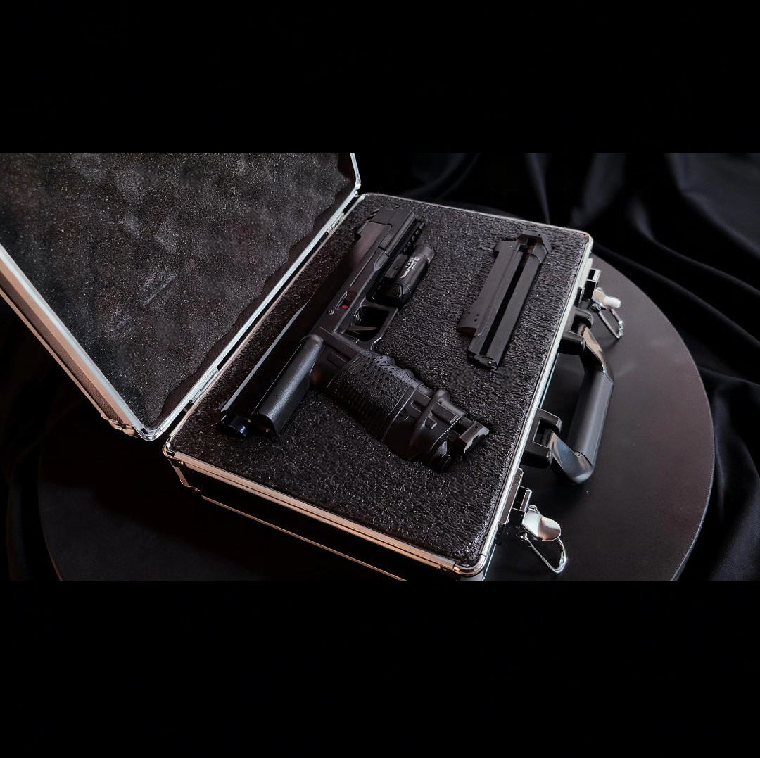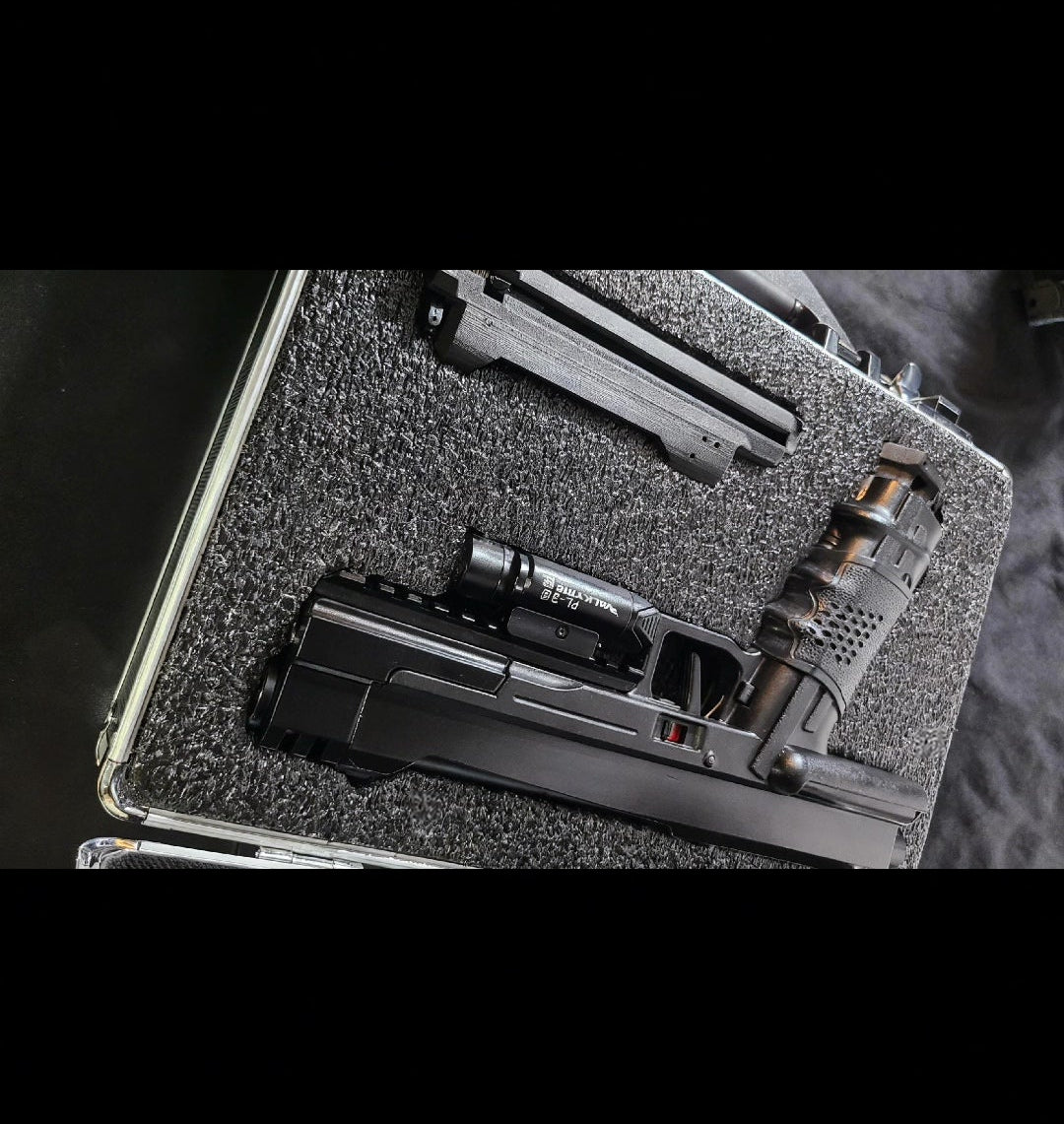 Another one of the Black Out Editions, cerakoted black, and everything you need in a pistol for such as, power, looks, functionality, and reliability, power plug, tac light, compensator with rail, and 2 ghost mags which are the lightest mags on the market.