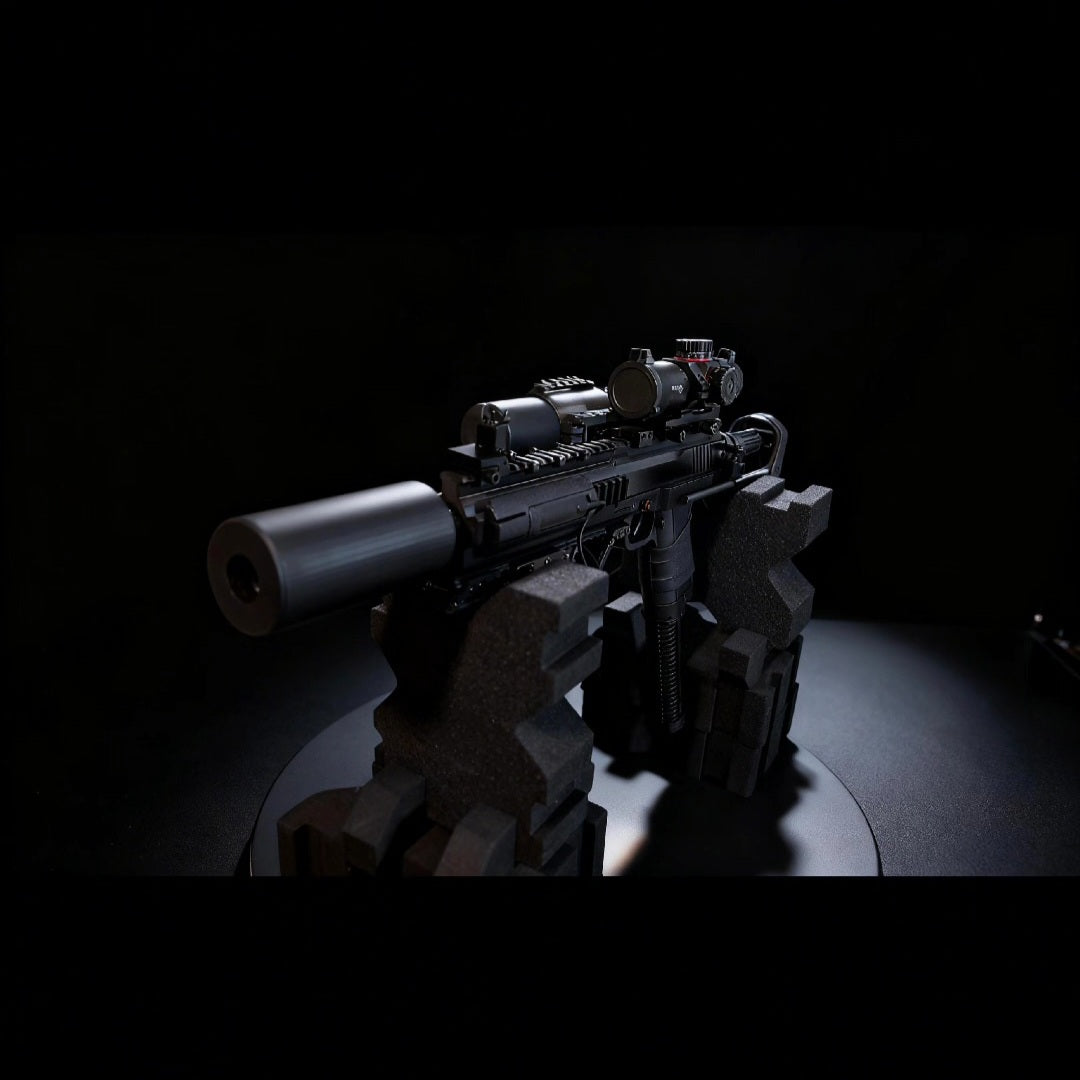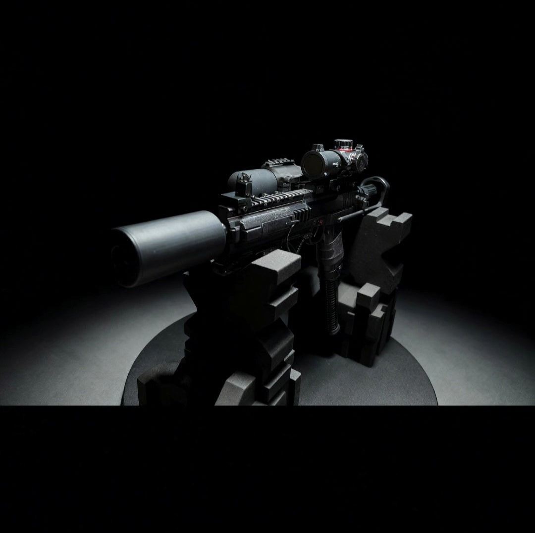 This FSC has the looks and the power, big mouth 3d suppressor, custom side mount with slide check asa, compact scope, tac light with pressure switch, red dot lazer and more.
