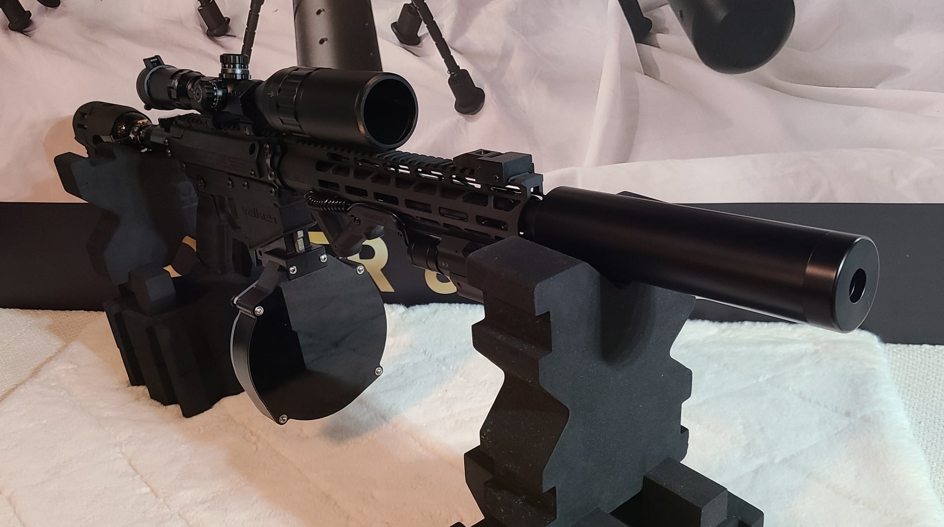 Another powerhouse, the M17 GANGSTER EDITION, set up for home defence, tac light with pressure switch, red dot lazer, scope, HD Suppressor, HD internals, 2 M17 MAGS, A 42 ROUND DRUM MAGAZINE, AND MORE.